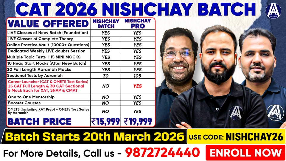 This Nischay batch is designed for students looking for quick and concise syllabus coverage of all important concepts to excel in the upcoming CAT exam. Comprehensive yet efficient preparation to enhance your chances of success.
